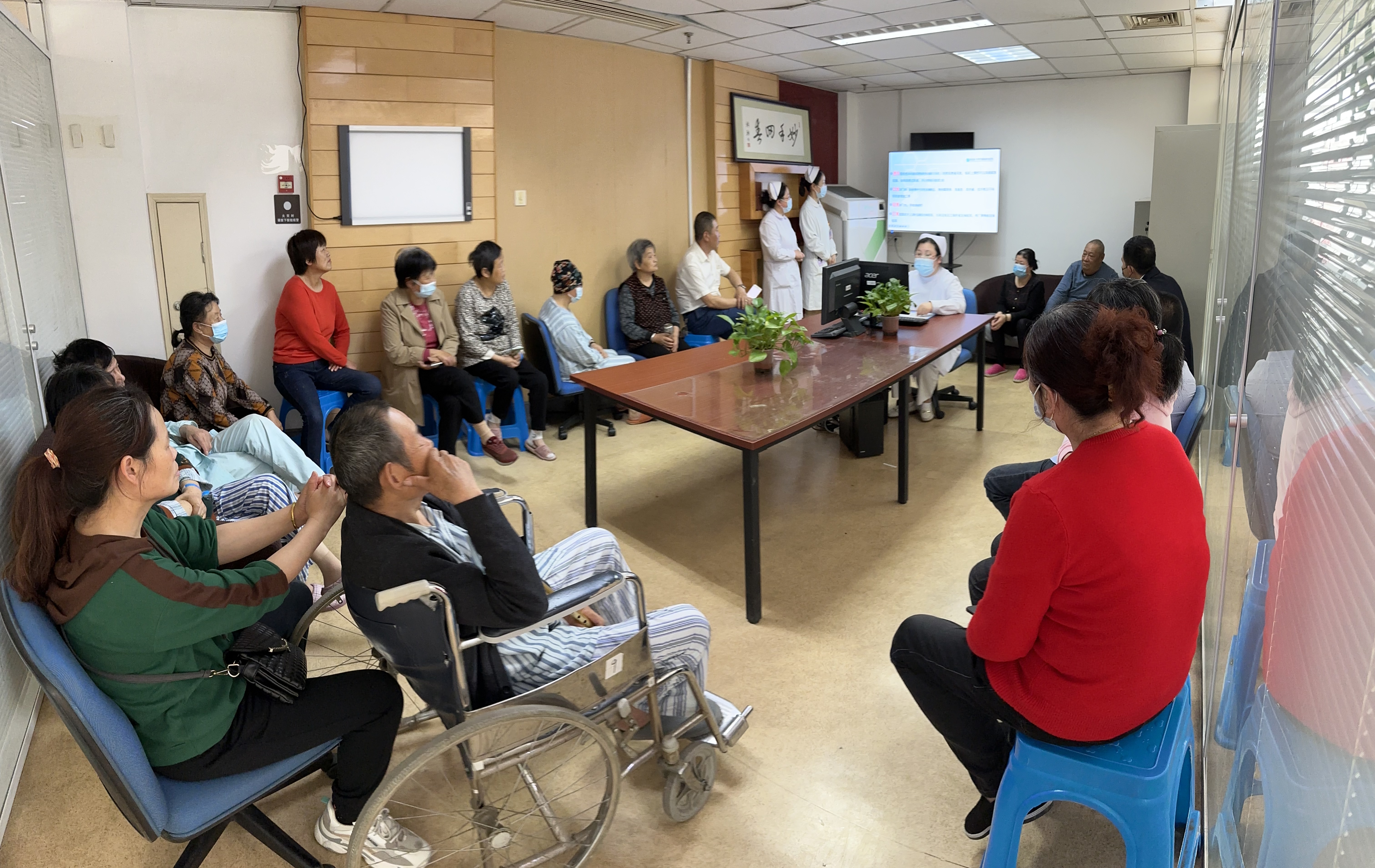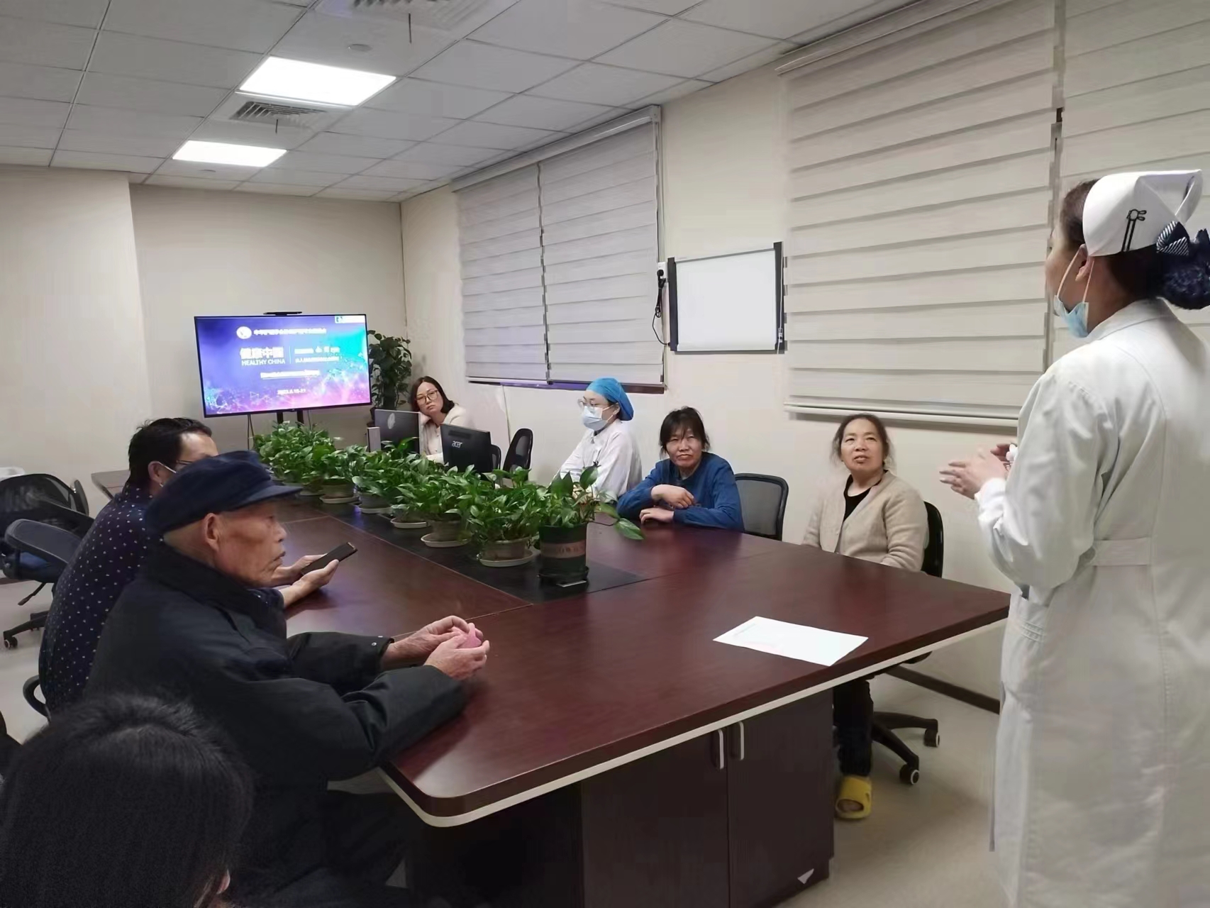 腫瘤中心派多名主任參照義診活動,護理人員通過多種途徑給就診患者進行腫瘤相關(guān)知識宣教。倡導(dǎo)通過均衡膳食、戒煙限酒、規(guī)范診療、保持良好的心態(tài)等,推動對癌癥的有效防治,提升了公眾對癌癥核心知識的知曉率,普及科學(xué)防癌理念,提升腫瘤的早診率和治愈率。同時護士通過現(xiàn)場帶領(lǐng)大家進行保健操的鍛煉使廣大民眾在日常生活中掌握健康的鍛煉方式。
