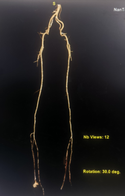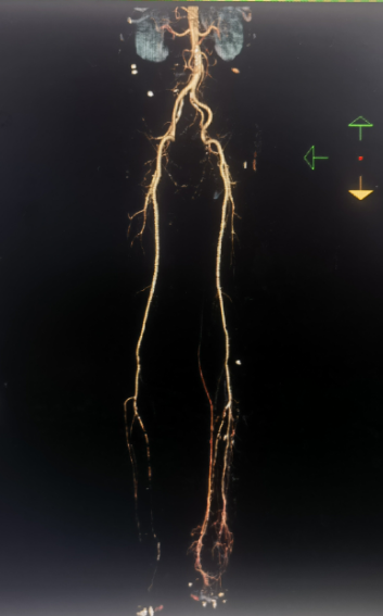 △脛骨搬運術(shù)前術(shù)后CTA血管對比,血管再生良好