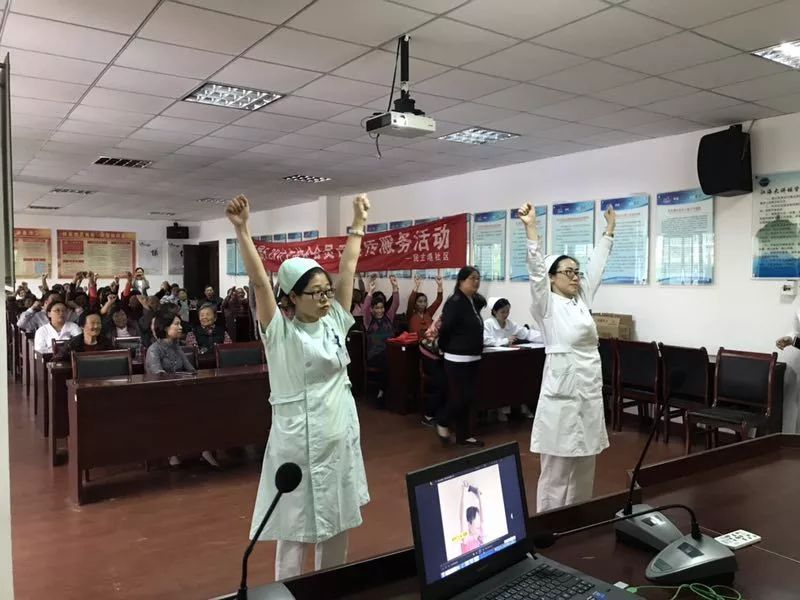 為了提高科普成效,講座還設(shè)置了提問互動環(huán)節(jié),居民們也積極踴躍參與。其中,雨傘運(yùn)動操及8分鐘運(yùn)動操視頻播放加現(xiàn)場演示,點(diǎn)燃了全場氣氛。