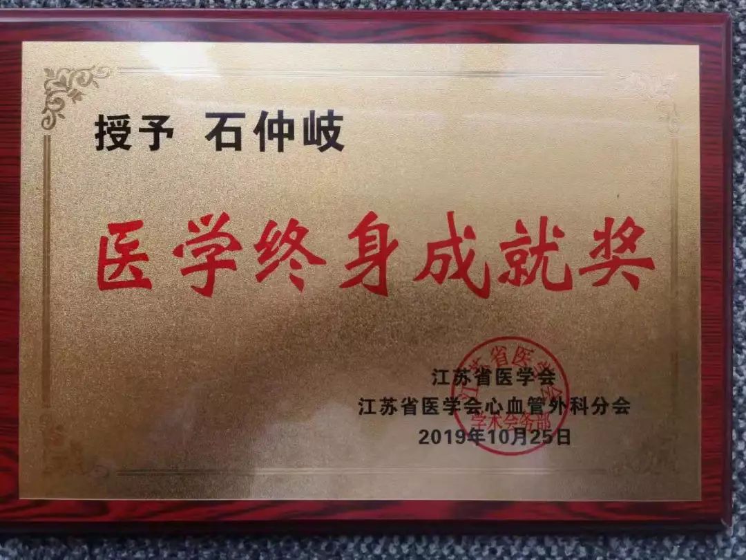 此次大會上,全省共有8位老專家獲此殊榮,石仲歧是蘇中、蘇北地區(qū)唯一入選的專家。獲獎專家的平均年齡在75歲以上,都曾擔任過本地區(qū)心血管外科分會主任委員及以上職務,熱心心血管外科事業(yè),具有優(yōu)異的學術(shù)成就和公認的學術(shù)地位,為江蘇省心血管外科學發(fā)展做出過巨大貢獻。