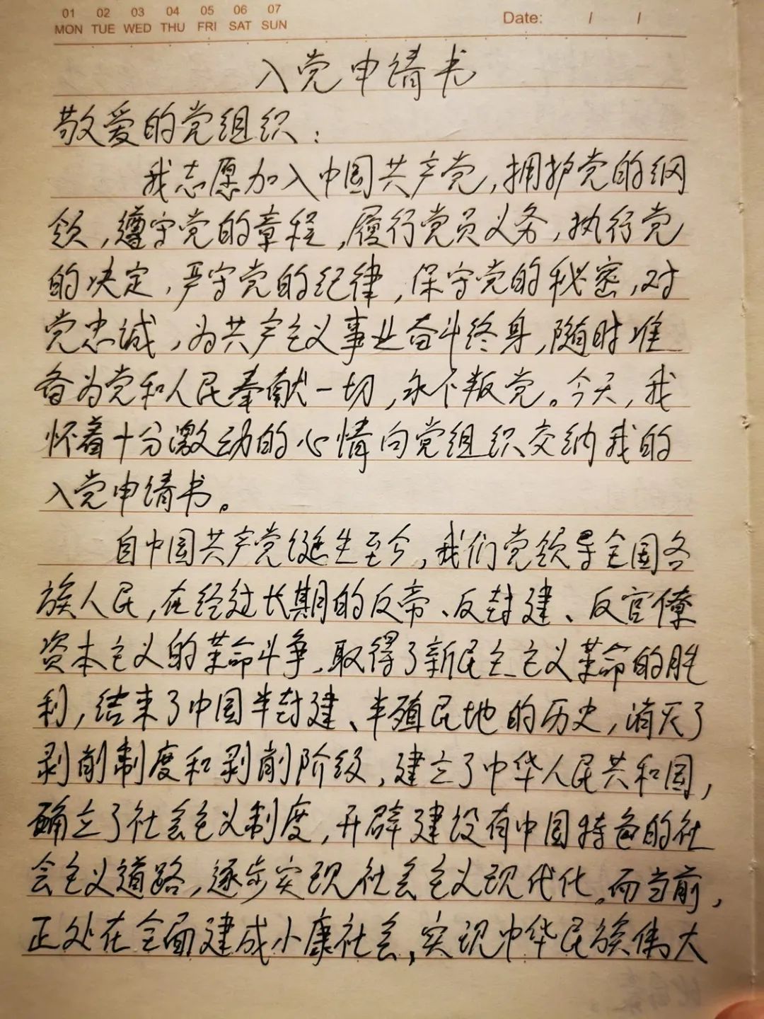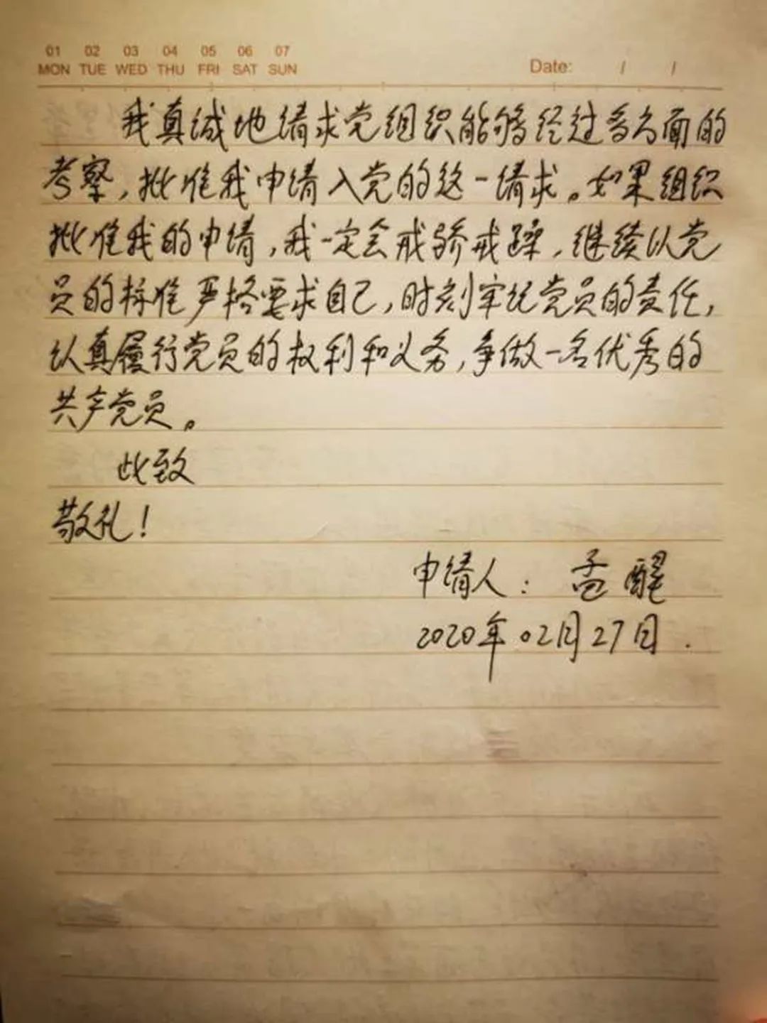 △孟醒提交的入黨申請書