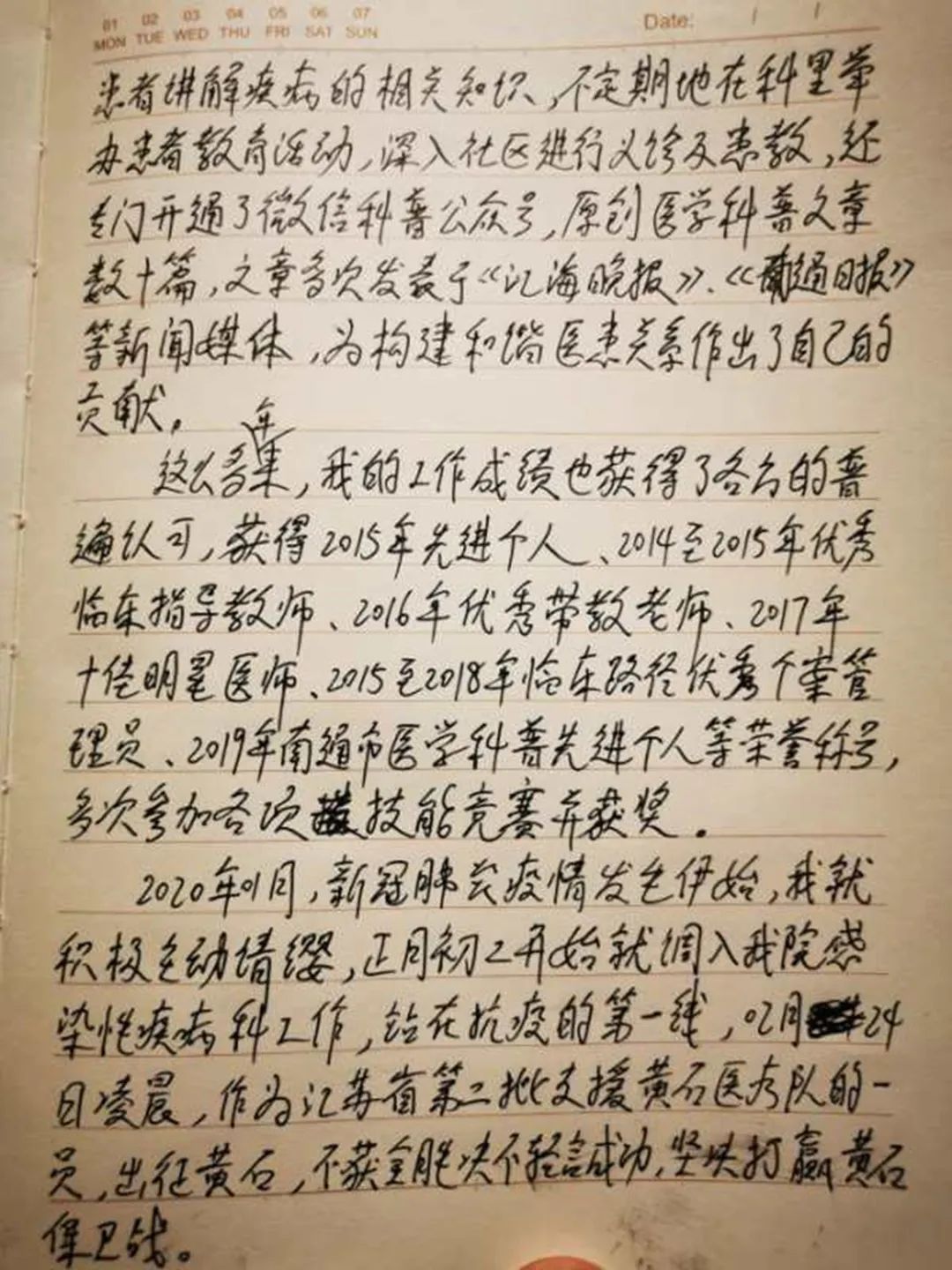 時間慢慢溜走,終于下班了。滿身疲倦的我,脫去防護(hù)服,如釋負(fù)重。洗好澡同伴和我說 :“咦 !又分不清誰是誰了!”我說:“姐姐 ,胖胖的那個就是我,像哆啦A夢一樣 的就是我??!”好希望自己真的是哆啦A夢?。∵@樣就有超能力了, 這樣大家就都不會生病了,多么美麗的愿望??!看似簡單幽默的話語,但是我內(nèi)心卻充滿著忐忑!