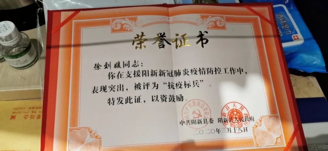 注:由于工作突出,3月18日,陽新縣委、縣政府授予徐劉媛“抗疫標(biāo)兵”光榮稱號(hào)。