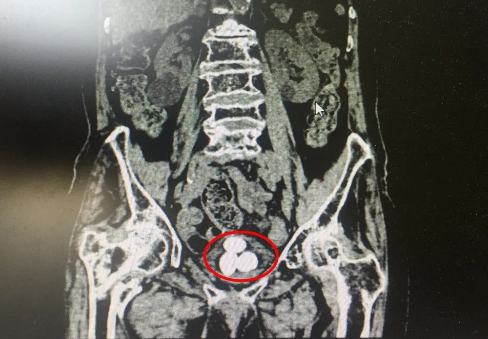 99歲的啟東老人楊奶奶,2年多前因?yàn)樗麑?dǎo)致了右側(cè)髖關(guān)節(jié)骨折,造成右腿畸形愈合,日常行走不便,長期臥床。之后,老人開始出現(xiàn)間斷血尿,到當(dāng)?shù)蒯t(yī)院檢查后發(fā)現(xiàn)患上了膀胱結(jié)石,因?yàn)闂钅棠棠挲g較大,手術(shù)風(fēng)險(xiǎn)高,醫(yī)生建議藥物治療,對(duì)癥消炎、止血。今年4月,楊奶奶再次出現(xiàn)了血尿情況,尿液深紅色,還有血塊。這一次,家人還是帶她去醫(yī)院保守治療,結(jié)果10多天了依然不見改善。持續(xù)的血尿,伴隨著尿頻、尿痛,讓老人的生活深受困擾。這樣的長壽本是福氣,楊奶奶卻每日受著疾病煎熬,吃不下睡不著??粗赀~的母親痛苦難耐,楊奶奶的子女們也很揪心。到底還能不能做手術(shù)把結(jié)石取出來?帶著這樣的疑問,在住進(jìn)南通瑞慈醫(yī)院泌尿外科病房之前,子女們咨詢了多家醫(yī)院,卻都被婉言謝絕。▲影像資料顯示,楊奶奶的膀胱幾乎被三顆結(jié)石占滿