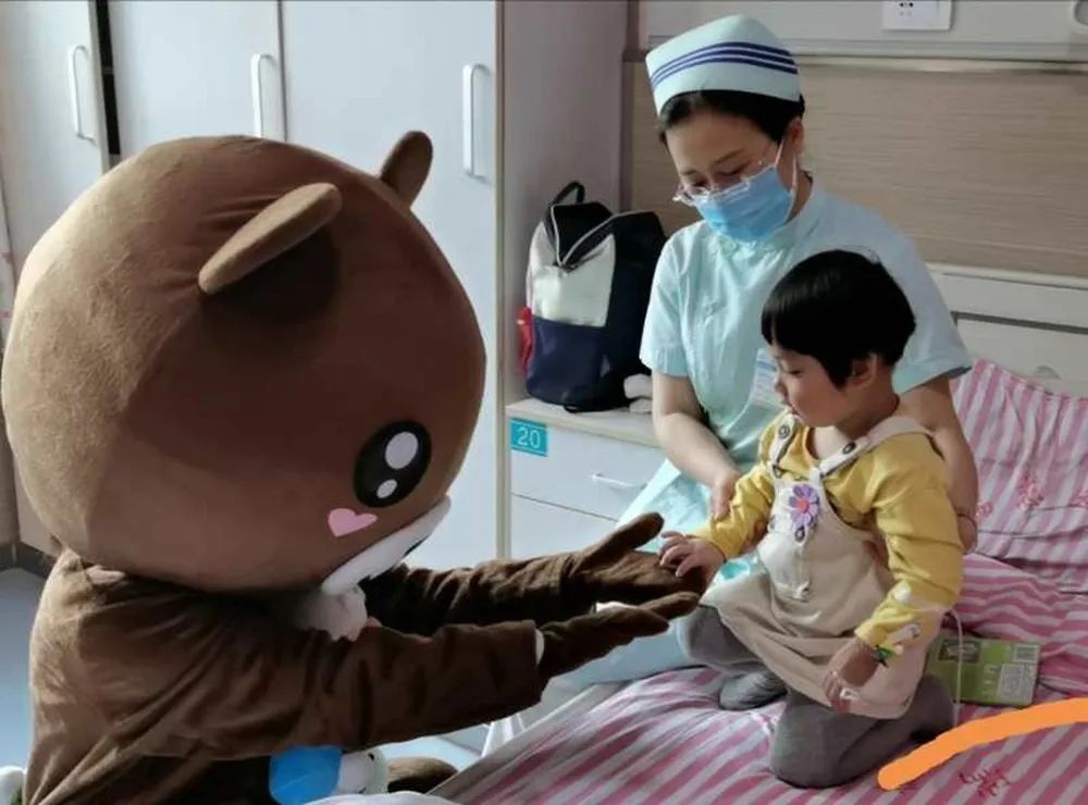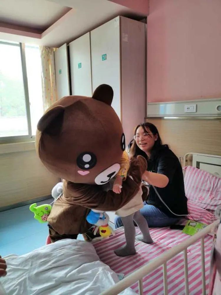 “小熊阿姨”挨個(gè)病房派發(fā)禮物