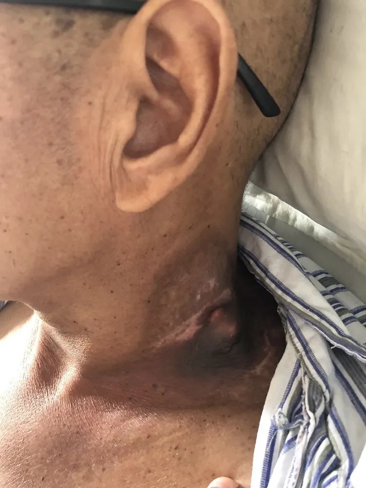 據(jù)張大伯的主治醫(yī)生,瑞慈上海腫瘤中心腫瘤內(nèi)科徐紅新主任介紹,食管癌轉移導致皮下的巨大腫塊,這種情況臨床上很少見。來院就診時,張大伯的腫塊直徑已經(jīng)達到了9厘米,頸部的皮膚隨時可能被撐破,導致后期的難以愈合,如果腫塊侵犯到了大動脈,則可能引起大出血進而危及生命。醫(yī)院為其組織了全院多學科會診,結合檢查結果認為腫塊的基底太大,無法通過外科手術治療解決問題,只能通過腫瘤內(nèi)科治療來控制病情進展。