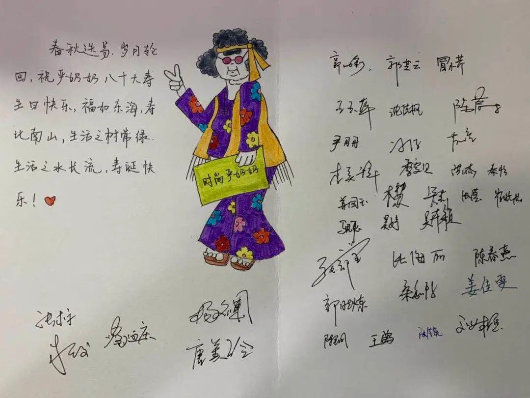 △圖為:兒童醫(yī)院醫(yī)護人員們給嚴奶奶準(zhǔn)備的生日賀卡