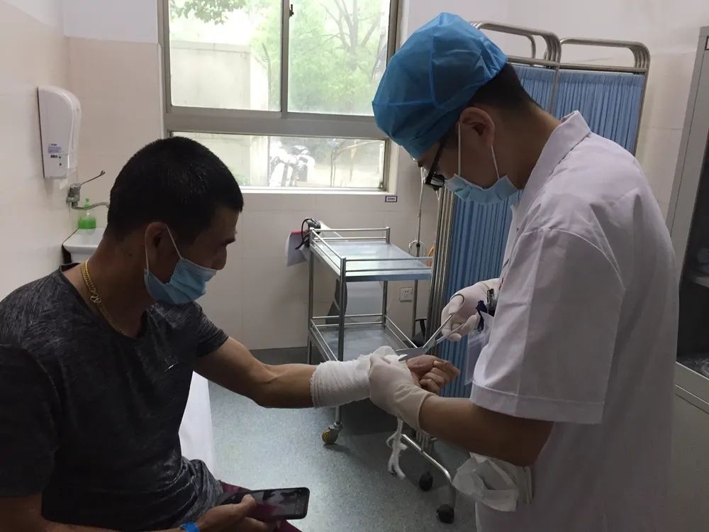 △圖為:城固縣中醫(yī)院袁科醫(yī)生在骨科為患者換藥。