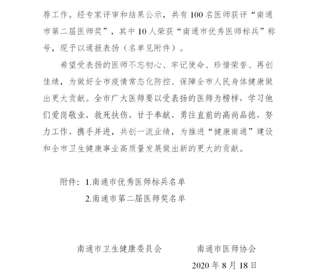 △8月19日,南通市醫(yī)師節(jié)慶祝大會(huì)隆重舉行,會(huì)上對(duì)獲獎(jiǎng)醫(yī)師進(jìn)行了表彰。