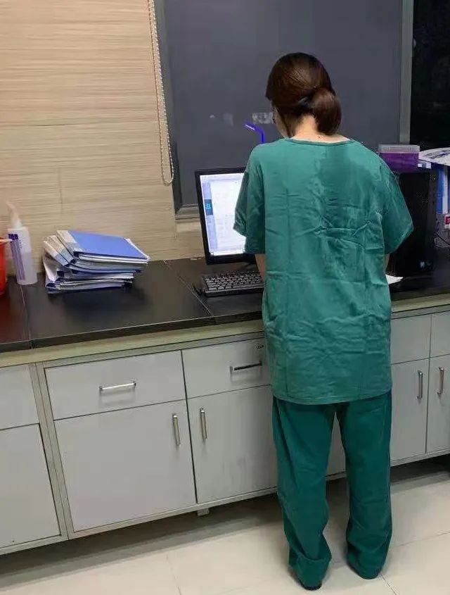 深夜,檢驗人脫下防護服,露出了被汗水浸濕的綠色手術衣。