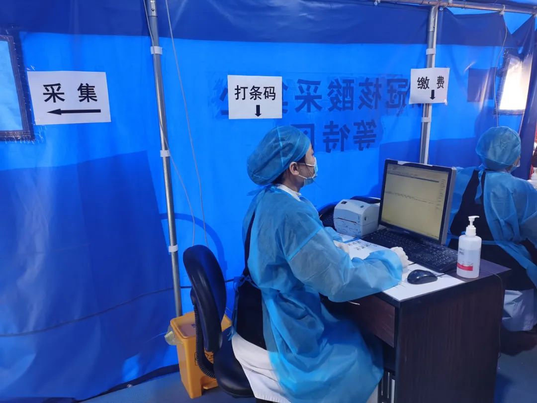 為積極配合“愿檢盡檢”的國家政策,應對春運期間核酸檢測人群的需求,除了默默堅守在后方崗位上的檢驗人,全院上下都做了很多工作。據(jù)門診部管新妹主任介紹,在發(fā)現(xiàn)有核酸檢測需求的返鄉(xiāng)人員急劇增多之后,醫(yī)院就第一時間緊急調(diào)整流程、調(diào)派人手,在核酸采樣點增設了收費處,收費、條碼打印、核酸采集三個節(jié)點都各安排了兩名人員,在保證住院患者和陪護人員的檢測不受影響的前提下,盡量提高檢測效率,縮短返鄉(xiāng)人員的檢測等待時間。同時延長了采樣時間,將原來的僅工作日采集調(diào)整到了周末無休。每天早晨,當班人員也總是會提前到崗,迅速投入工作。