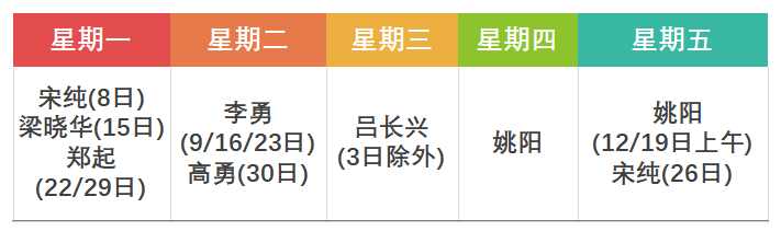 周一 | 周二 | 周三 | 周四 | 周五 |