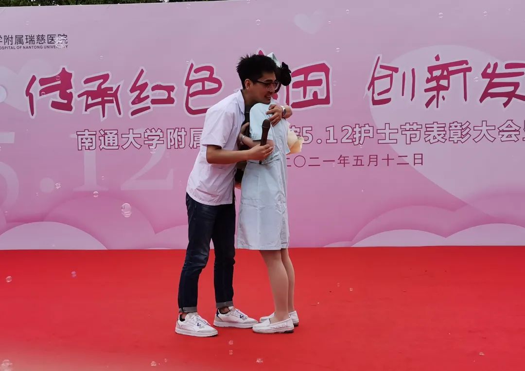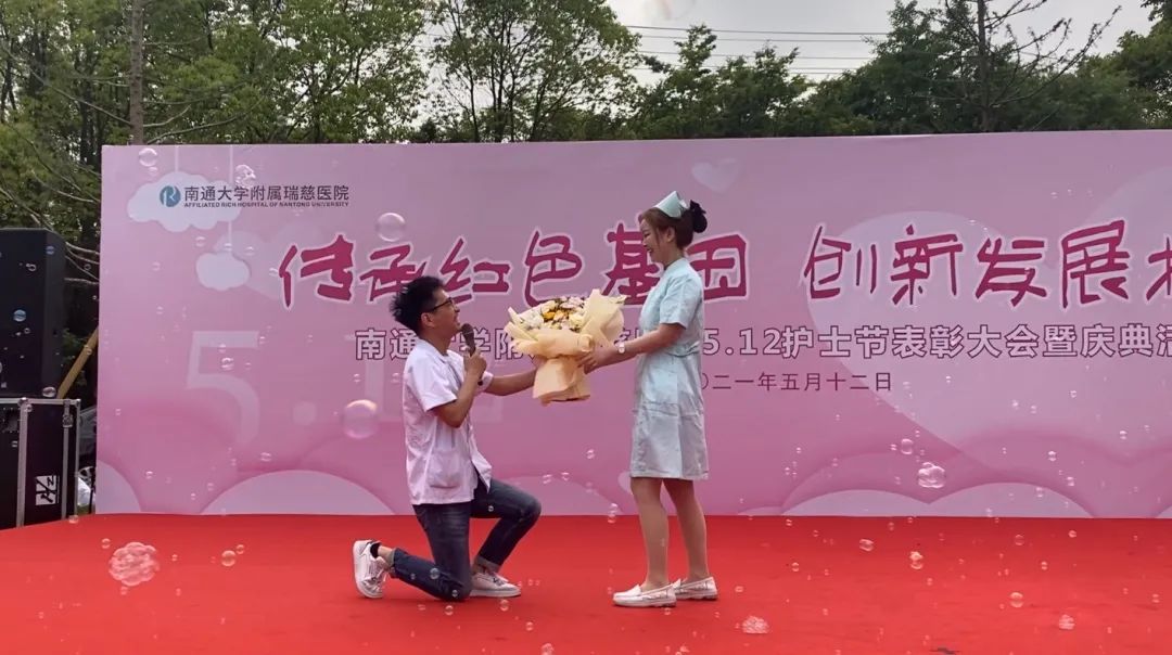 “我整個人都是懵的,真的沒想到他也有開竅的一天,我只以為他是要代表醫(yī)生上臺表演節(jié)目,” 曹玉婝談及被求婚的感受,表示自己很受感動。今天既是護士節(jié),又是求婚日,有大家的見證和滿滿的祝福,她說,這是自己收到過的最特別、最珍貴的護士節(jié)禮物。