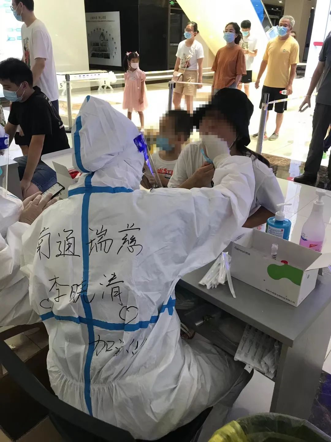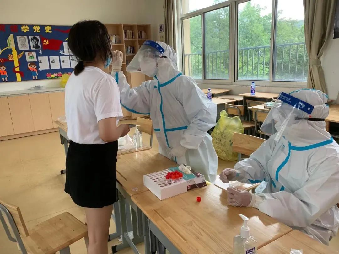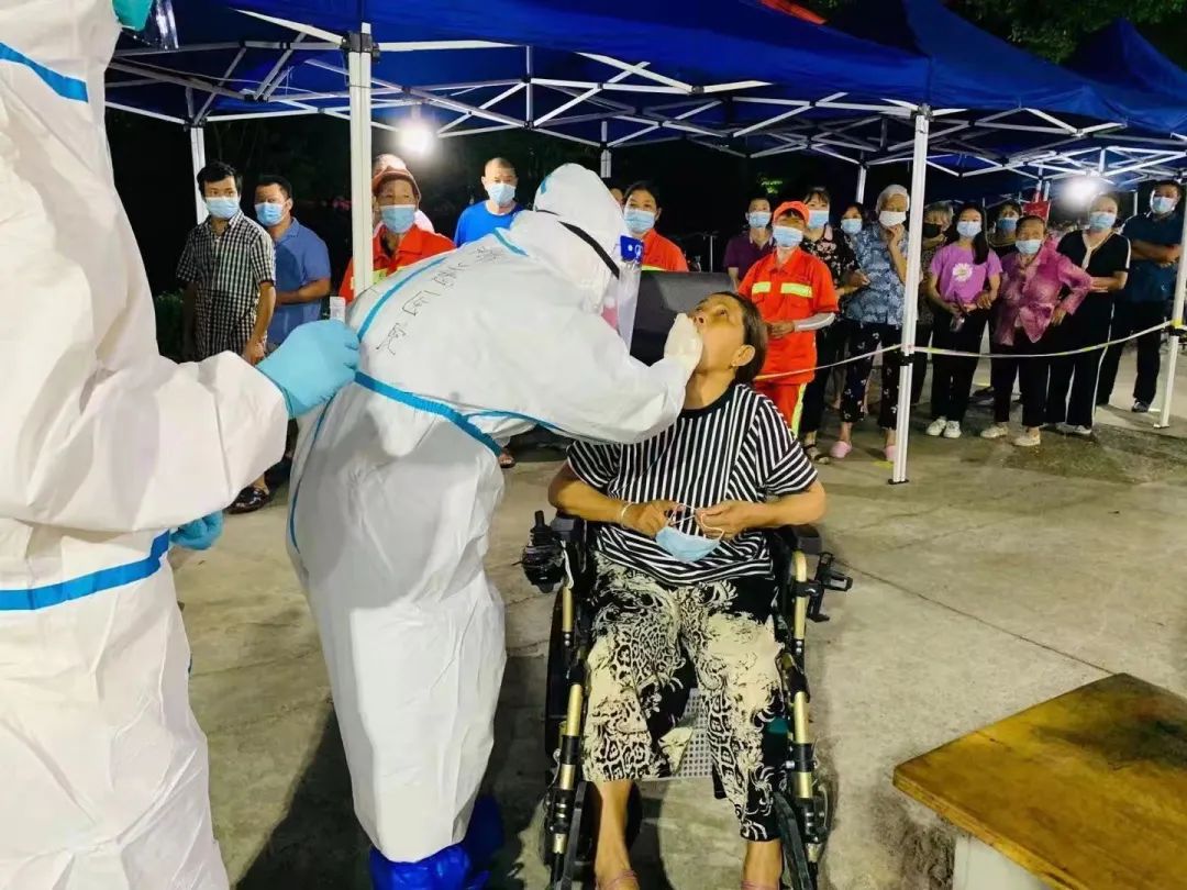 那天天氣很熱,老小區(qū)只有樓梯,隊員們需要穿著防護服爬上6、7層的老樓,因為分散在不同的樓棟中,她們還得穿著防護服徒步走到下一戶人家。防護服必須一戶一換,采完一戶,衣服就濕透了。不少隊員都出現(xiàn)了頭暈、惡心的情況,隊員李曉清的情況最嚴重,走了三家之后就支撐不下去了,四肢無力,舌頭發(fā)麻。