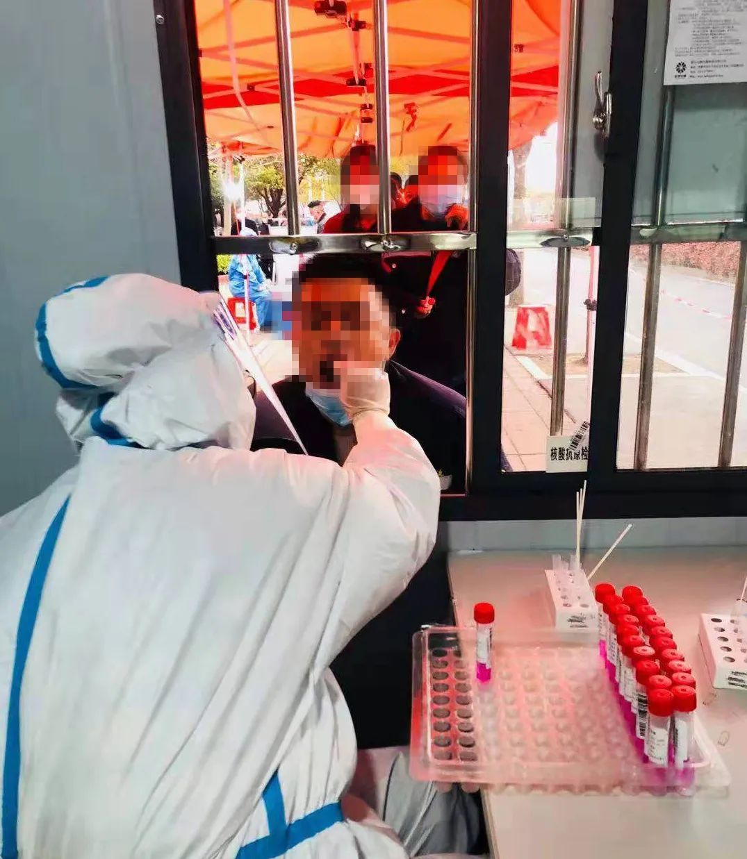 從早上8點到下午4點,他們連續(xù)作戰(zhàn),在上海浦東新區(qū)高東鎮(zhèn)完成了近1.5萬人次的核酸采集任務(wù)。害怕自己中途要上廁所,開始一天的工作前,他們甚至沒敢多喝兩口水。遇到?jīng)]有電梯的老小區(qū)和行動不便的老人,他們必須爬上樓上門采核酸,穿著密不透風的防護服,對他們來說是極大的體力消耗,汗水浸透衣裳,用“酸爽”兩個字來形容絕對不為過!