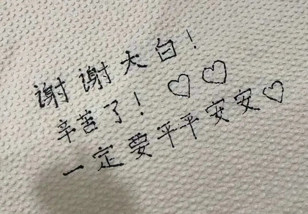 “抗疫很苦,有你很甜!”“今天你休息,我們穿白衣,讓我們來守護你?!薄肮芩麕讱q,生日萬歲!”“白衣執(zhí)甲,巾幗最佳!”防護服上一句句愛的“告白”,樸素卻真摯,讓袁李倩淚濕了眼眶,三盒代表三十歲的方便面又讓她忍不住破涕為笑。