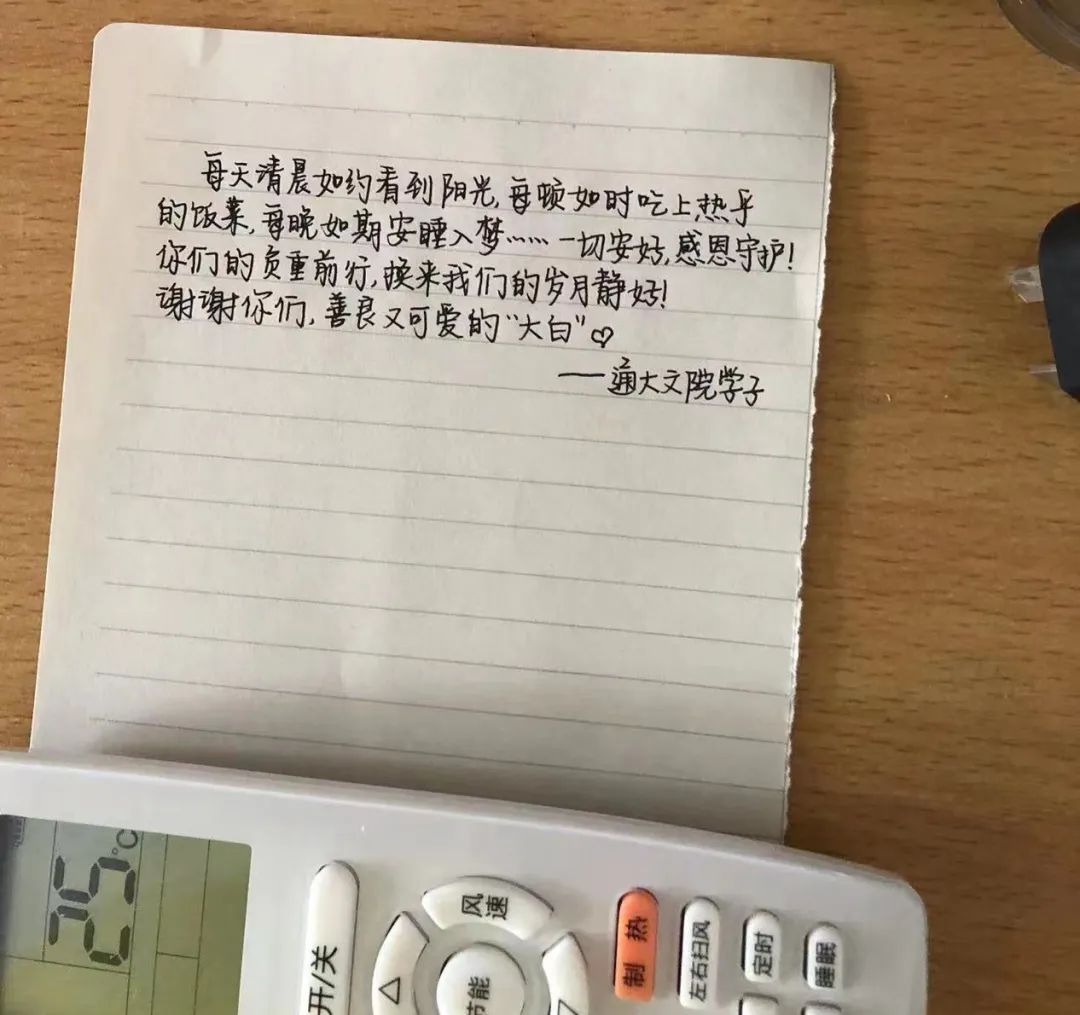 △圖為:隔離學生解除隔離前,就地取材,給隔離點工作人員們留下一張張感謝字條。