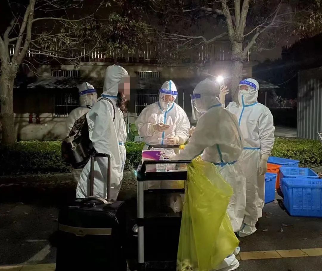 隔離學生在隔離期間需要網(wǎng)課學習,隔離點的工作人員穿著厚厚的防護服,在對桌椅消殺后,把61張桌椅一層層樓,徒步搬到了房間;有隔離人員帶著21個月的嬰兒,工作人員為其購買尿不濕、奶粉等用品,還為其準備無鹽無油的嬰兒食品;有老人腸胃不好,日常飲食大家總是特別留意……