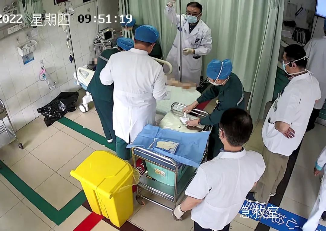 9:50,救護(hù)車(chē)到達(dá)后,醫(yī)院隨即為她啟動(dòng)創(chuàng)傷中心綠色通道,“心率131次/分,血壓80/50mmHg,休克!”醫(yī)護(hù)人員以最快的速度建立靜脈通路,抽血化驗(yàn)、配血、外固定、相關(guān)專科急會(huì)診……各項(xiàng)搶救措施和檢查有條不紊。