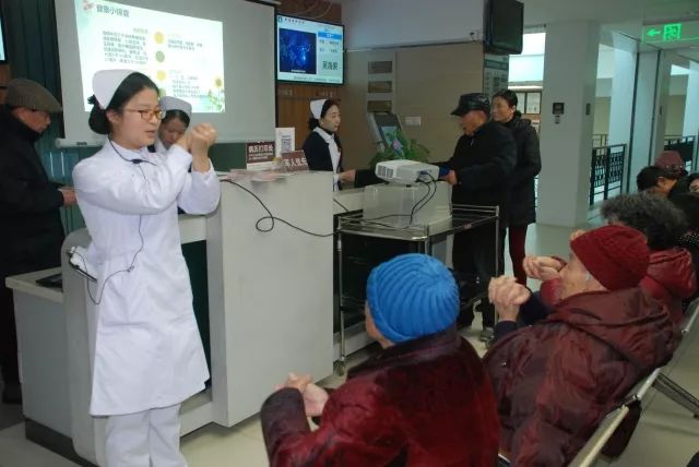 活動(dòng)中,神經(jīng)內(nèi)科的資深護(hù)士以生動(dòng)活潑的方式像在座的聽眾講述了腦梗塞的形成原因、預(yù)防方法和日常飲食建議,并現(xiàn)場(chǎng)教老年人一起做健康操,讓老年人出門在外或者在家也能方便地進(jìn)行操作。