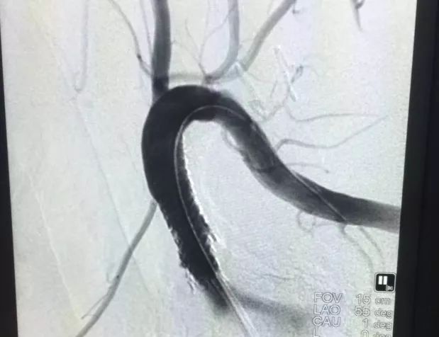 通過術(shù)中血管造影可以發(fā)現(xiàn),支架植入前后對(duì)比十分明顯。