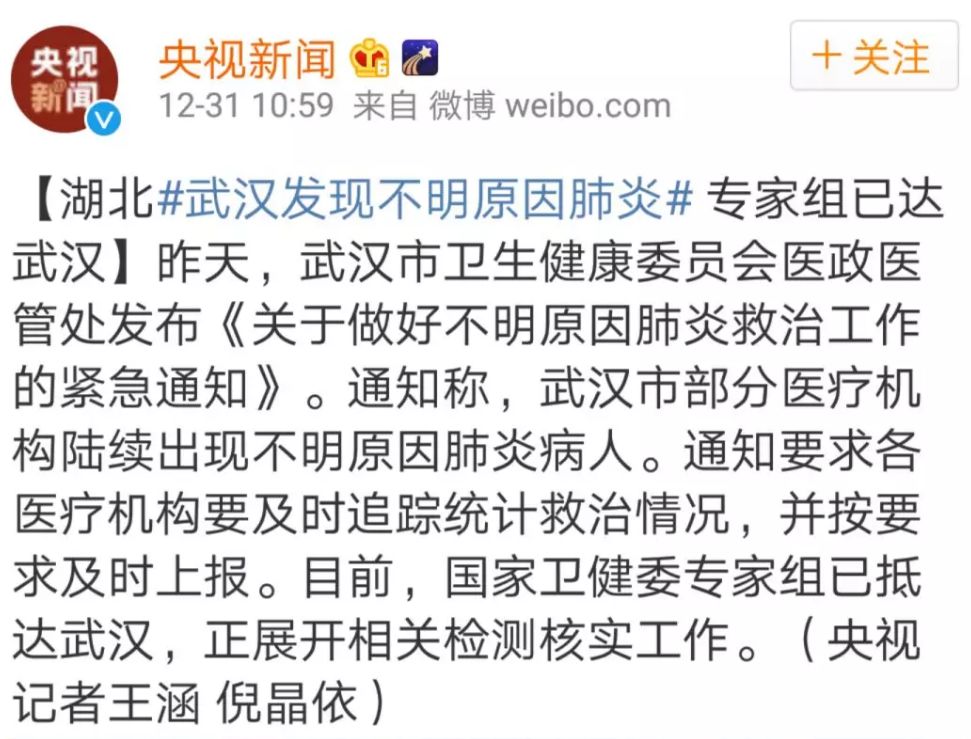 2019年12月30日,就在大家都在為新年做準(zhǔn)備的同時,武漢衛(wèi)健委發(fā)布了《市衛(wèi)生健康委關(guān)于報送不明原因肺炎救治情況的緊急通知》。