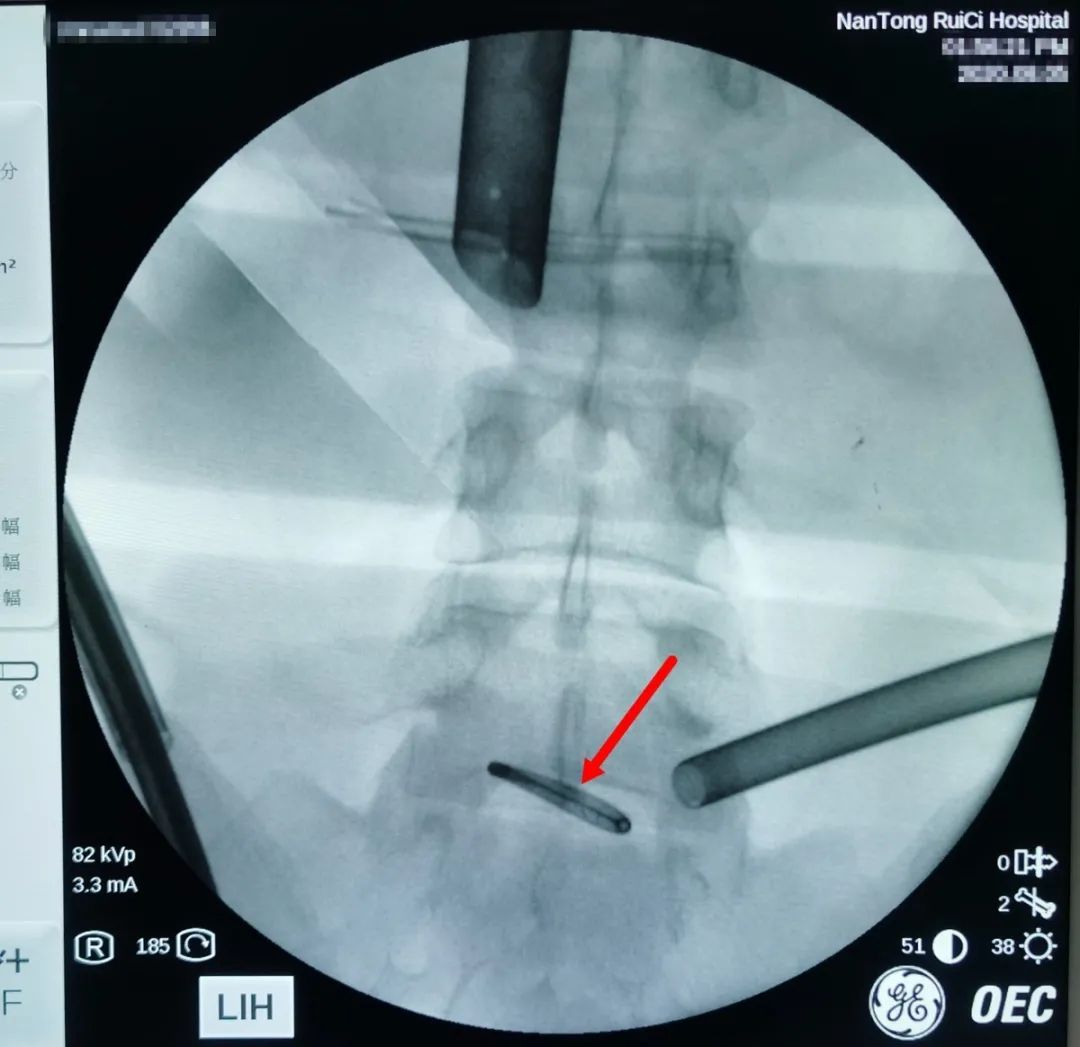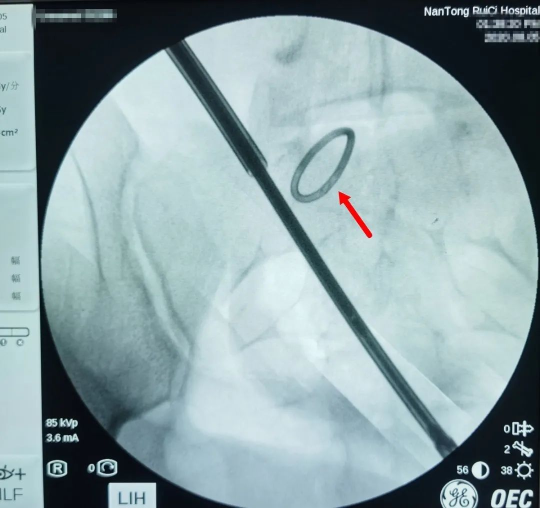 △術(shù)中X光,可清晰看到節(jié)育環(huán)。