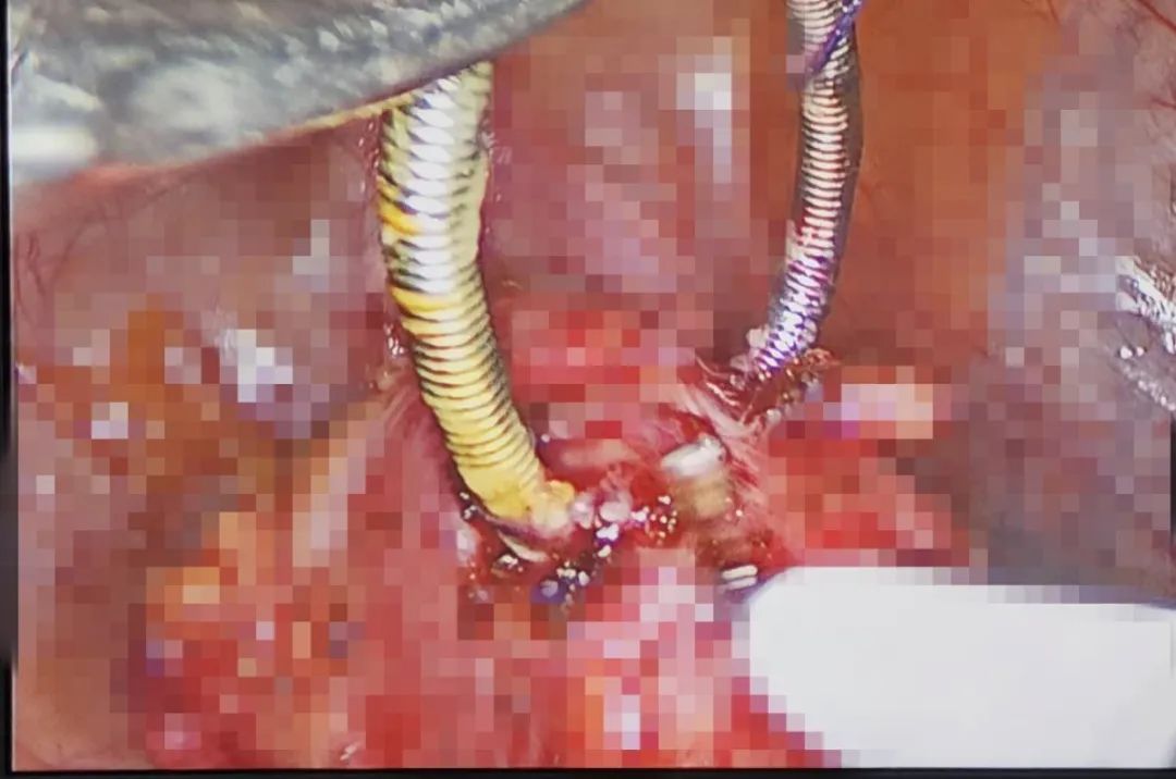之后胡主任和吳主任相互配合,將節(jié)育環(huán)完整取出,并根據(jù)術(shù)中談話時患者家屬選擇的手術(shù)方案,對腸壁的兩處瘺孔進(jìn)行了修補縫合,手術(shù)有驚無險地順利結(jié)束。