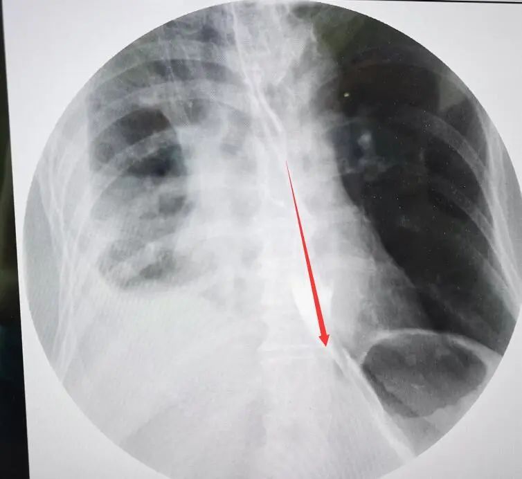 食管造影能夠清晰地看到造影劑漏入胸腔
