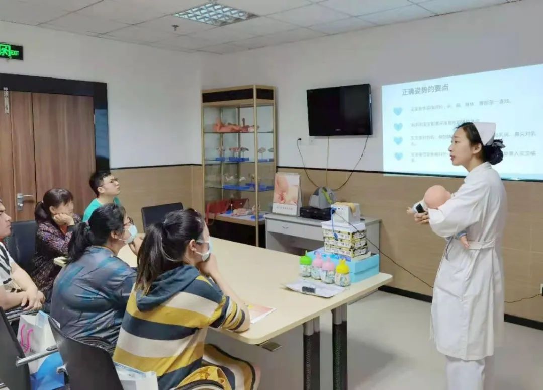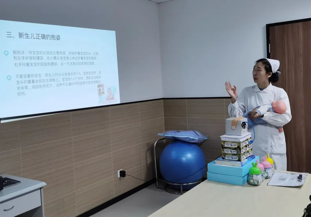 課程中經(jīng)驗(yàn)豐富的產(chǎn)科護(hù)士朱曉敏為孕媽媽和家屬講解了母乳喂養(yǎng)的好處,普及了各階段母乳的成分和儲藏方法,以及新生兒的正確抱姿、尿不濕穿脫等新生兒的日常護(hù)理要點(diǎn),通過圖片、視頻和現(xiàn)場演示,讓準(zhǔn)爸媽家庭快速掌握喂養(yǎng)技巧,增加了媽媽們母乳喂養(yǎng)的信心!互動環(huán)節(jié),大家積極發(fā)言、上臺演示,現(xiàn)場氣氛活躍。