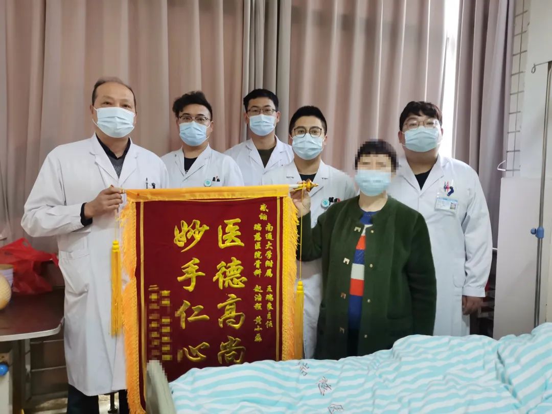 △圖為:出院前,患者家屬送錦旗