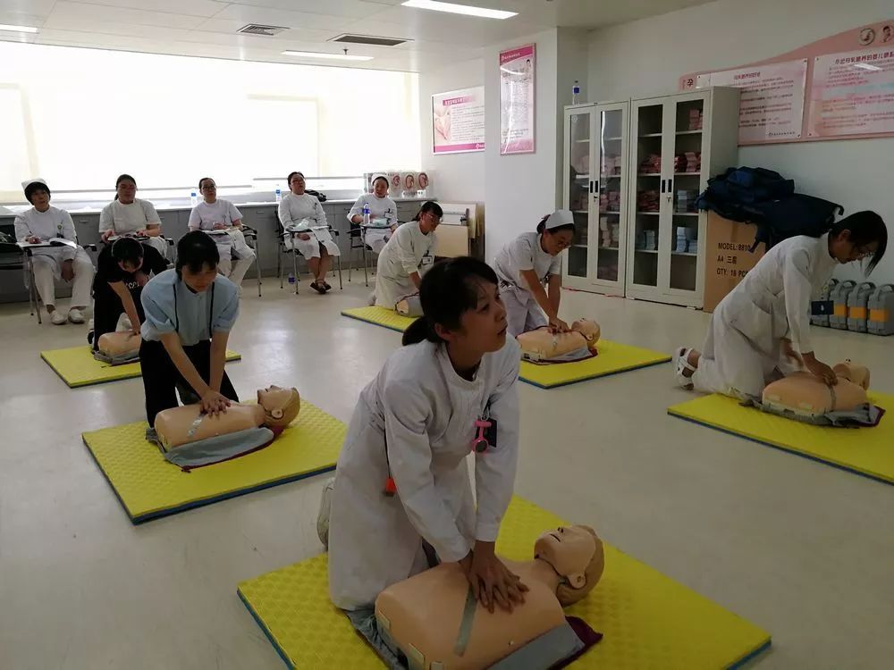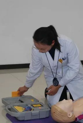 圖為AHA學(xué)員在瑞慈醫(yī)院導(dǎo)師的指導(dǎo)下使用AED(自動(dòng)體外除顫儀)