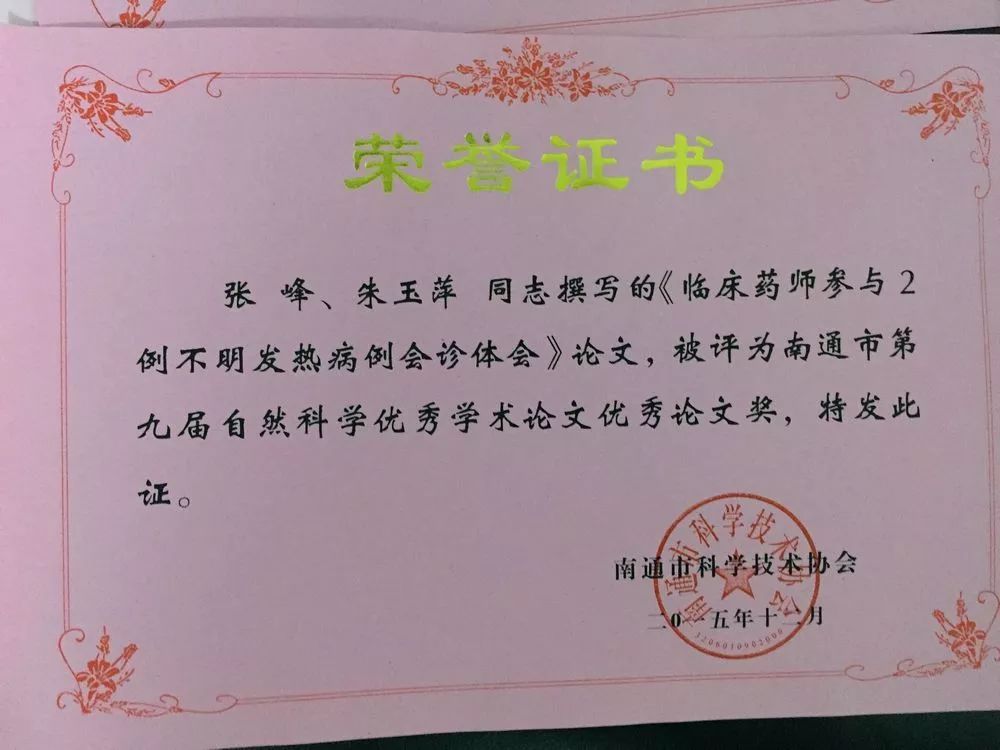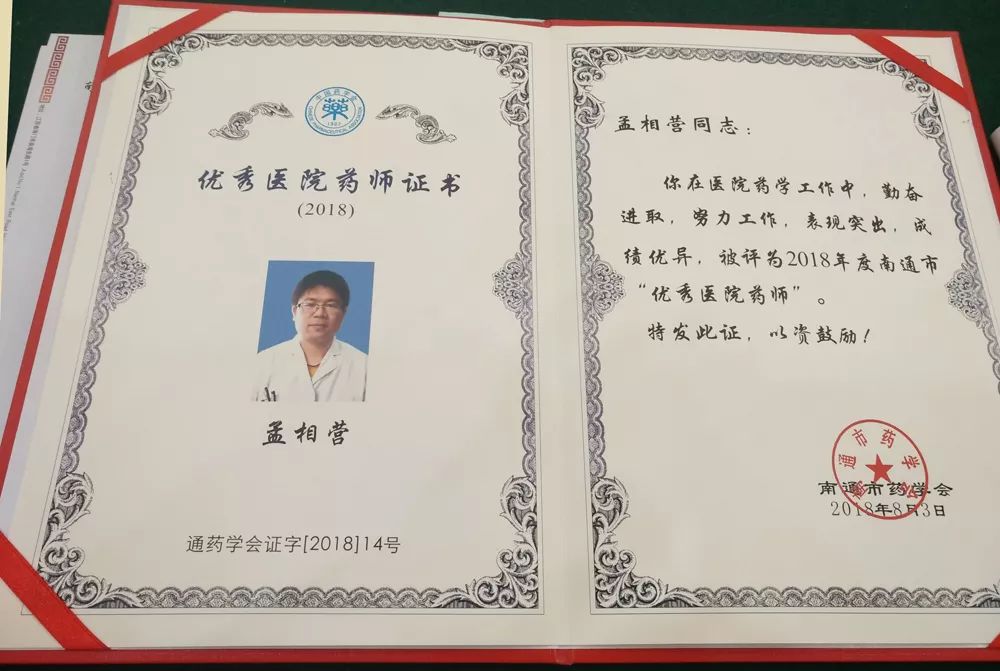 為鼓勵全市廣大醫(yī)院藥學科技工作者愛崗敬業(yè),創(chuàng)新爭優(yōu),表彰藥學工作者在藥學服務、藥事管理、藥學科研等方面取得的顯著成績,南通市藥學會在全市范圍內組織開展了南通市優(yōu)秀藥師評選活動,共評選出了10名十佳醫(yī)院藥師和10名優(yōu)秀醫(yī)院藥師,并在8月的2018年度優(yōu)秀醫(yī)院藥師頒獎大會上進行了集體表彰獎勵,南通瑞慈醫(yī)院藥劑科主管藥師孟相營獲評”2018年度南通市優(yōu)秀醫(yī)院藥師“。