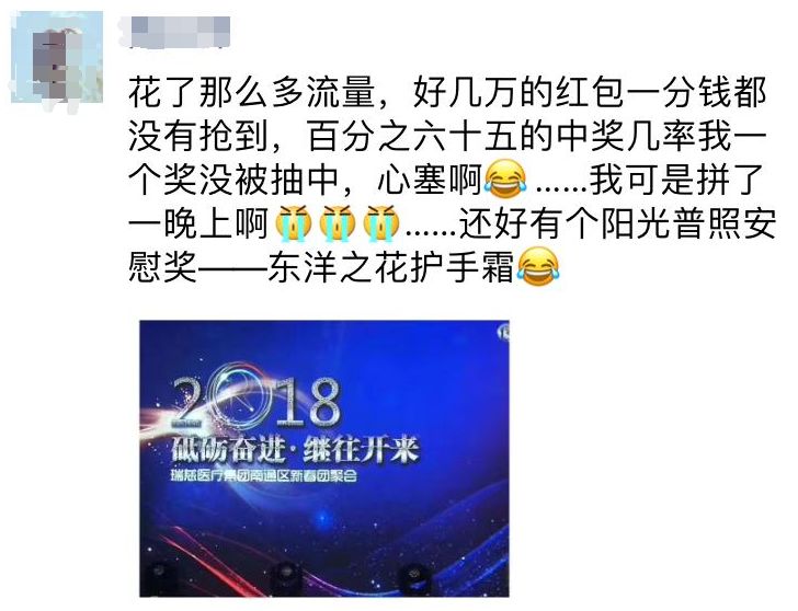 ▲每一年的新春團(tuán)聚會(huì),為了保證醫(yī)院各項(xiàng)工作的正常開展,許多員工必須留守工作崗位。今年的幸運(yùn)抽獎(jiǎng)軟件貼心地涵蓋了全體員工,讓他們在常規(guī)的補(bǔ)貼之外也能收獲一份驚喜。
