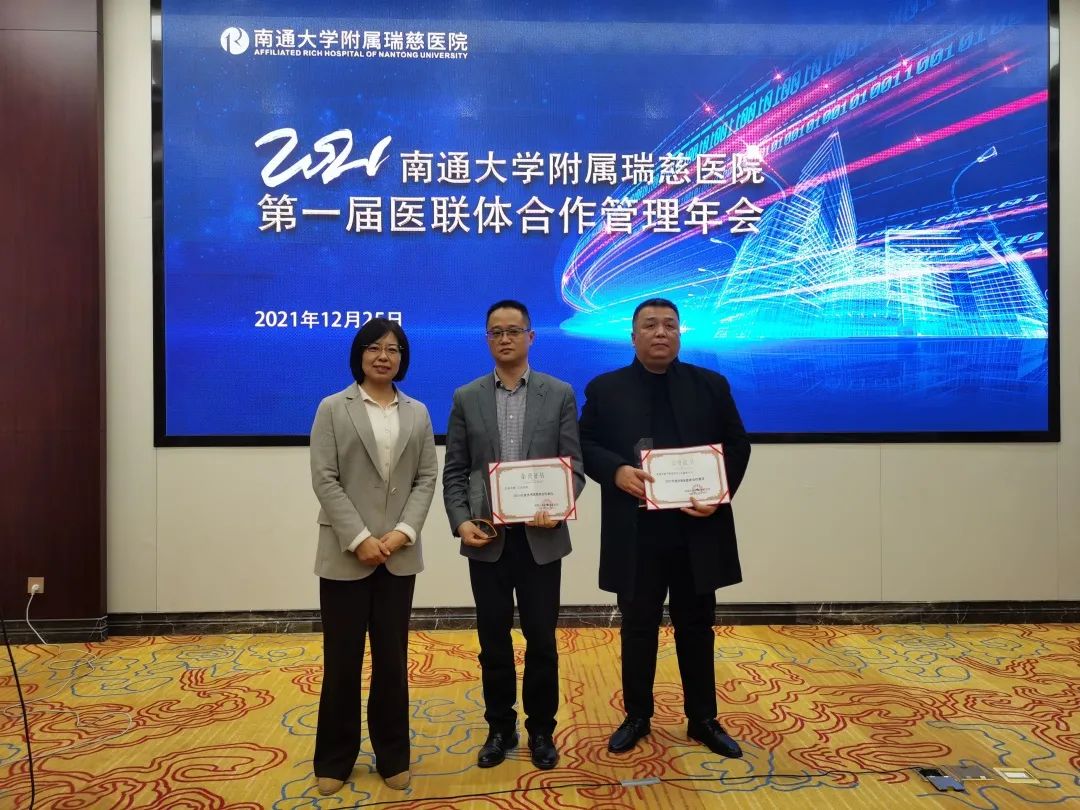 △圖為:2021年度優(yōu)秀醫(yī)聯(lián)體合作單位(開發(fā)區(qū)新開街道社區(qū)衛(wèi)生服務(wù)中心、啟東市第二人民醫(yī)院)表彰