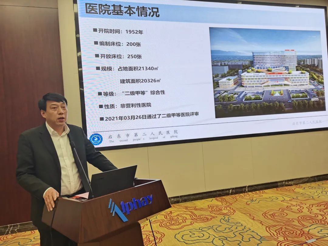 △圖為:優(yōu)秀醫(yī)聯(lián)體合作單位代表,啟東市第二人民醫(yī)院副院長薛峰和與會人員進(jìn)行合作分享