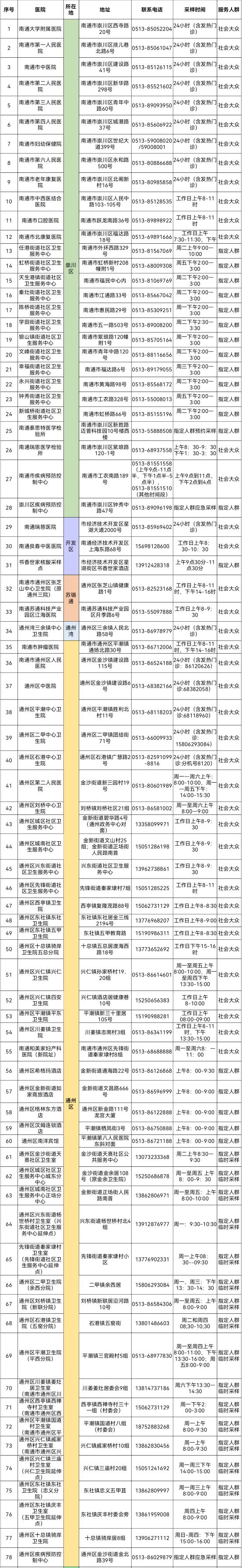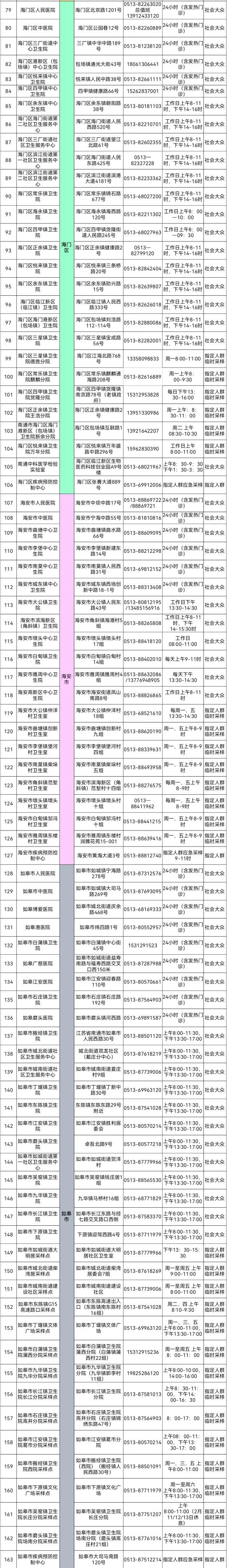 南通市225家新冠病毒核酸檢測(cè)采樣點(diǎn)名單
