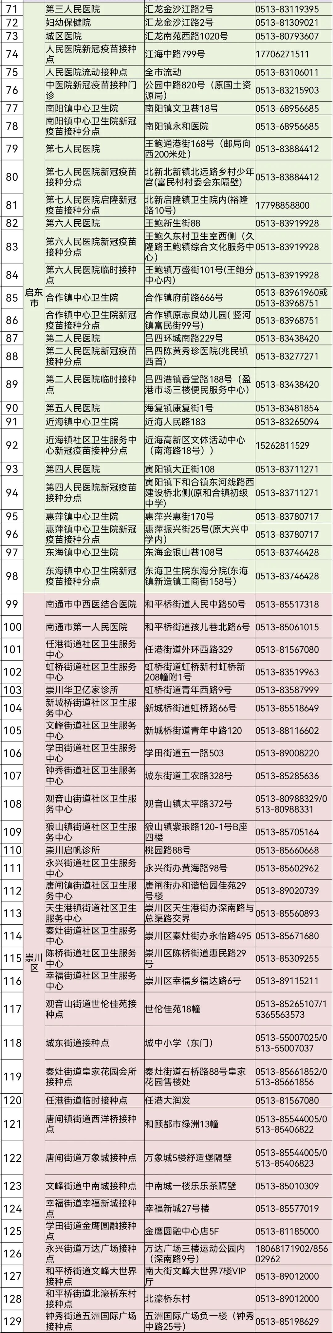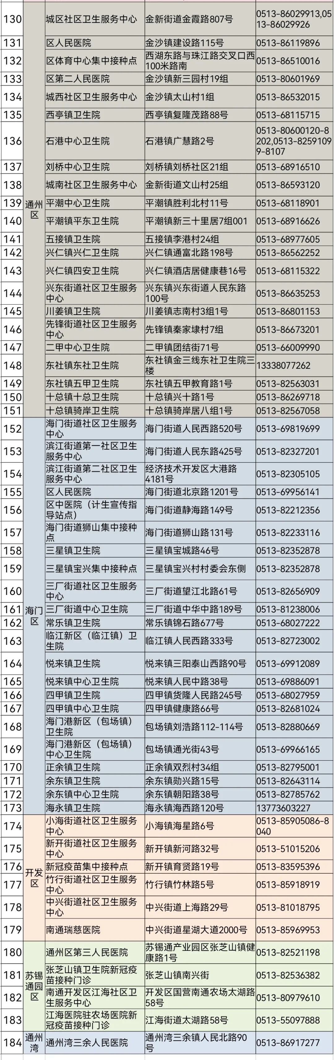 南通市184家疫苗接種機(jī)構(gòu)名單