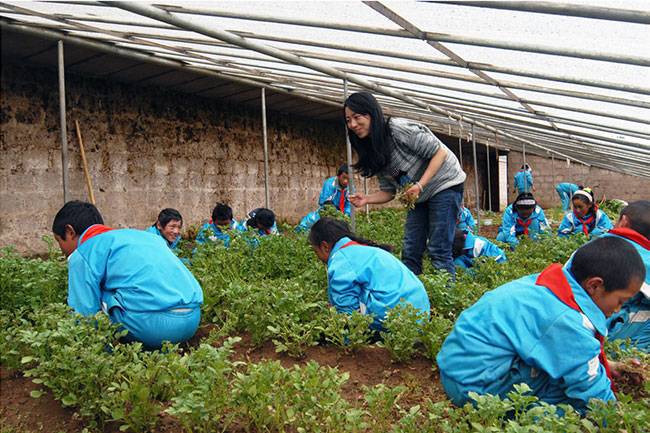 圖:白覺(jué)措帶領(lǐng)學(xué)生們?cè)跍嘏飫趧?dòng)